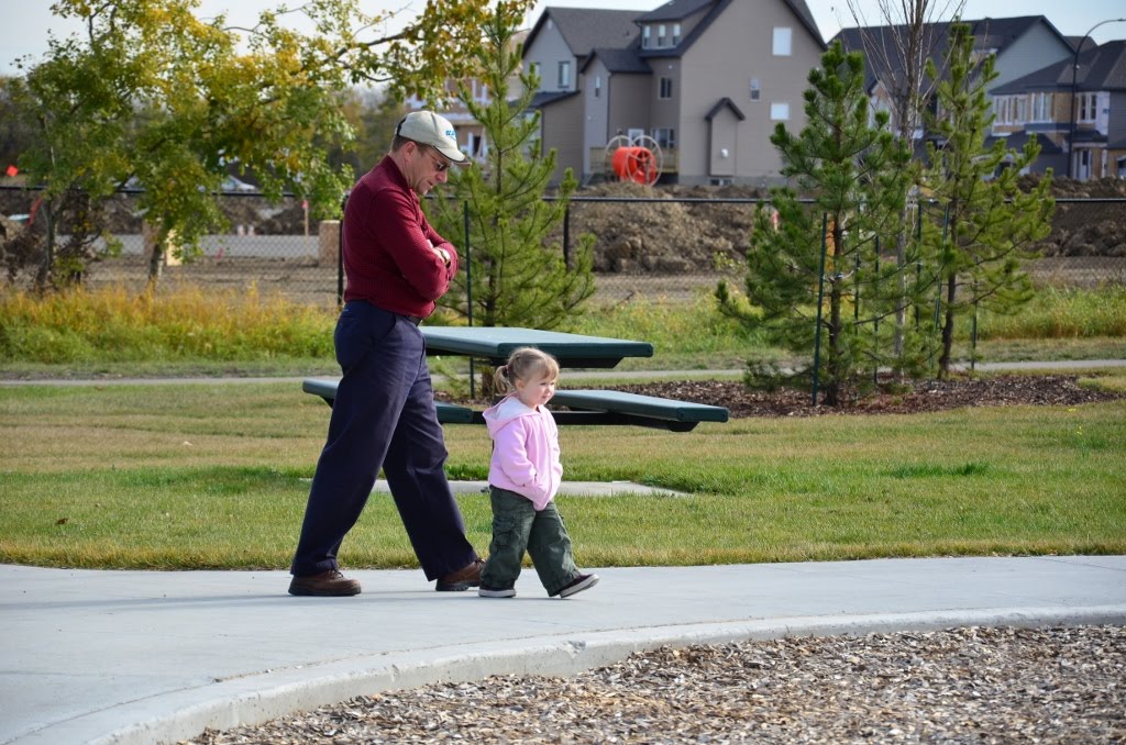 Hopey and her Papa walking back to the swings while the others of us were playing ball nearby. Chloe pointed out their similar stride!I was caught putting my feet up in the double stroller!